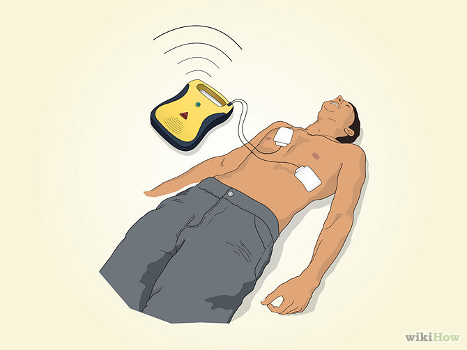 Wenn der Schock empfohlen wird (manchmal wird er das nicht), sieh nach, ob alle Leute "weit weg stehen" und den Patienten nicht berühren.